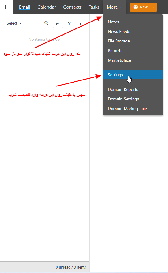 سپس با نام کاربری و رمز عبور ایمیل خود وارد شوید. سپس طبق تصویر زیر وارد قسمت تنظمیات شوید