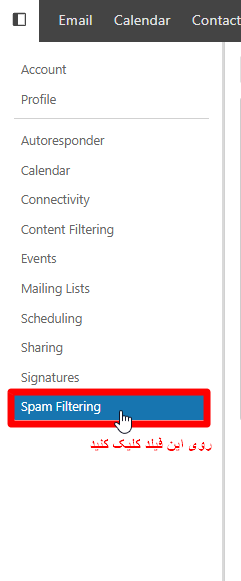 پس از باز شدن منوی تنظیمات در ستون سمت چپ، روی گزینه Spam Filtering کلیک کنید.