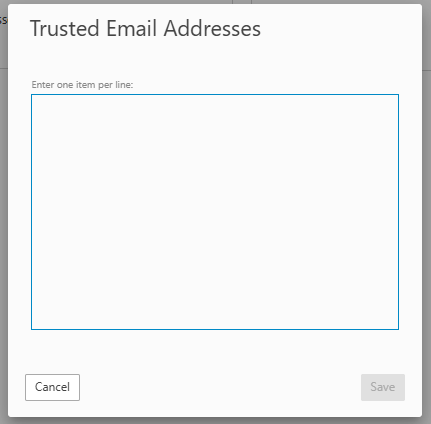اگر فقط میخواهید یک آدرس ایمیل خاص را به لیست اعتماد اضافه کنید (مثلاً support@company.com)، از بخش Trusted Email Addresses استفاده کنید.