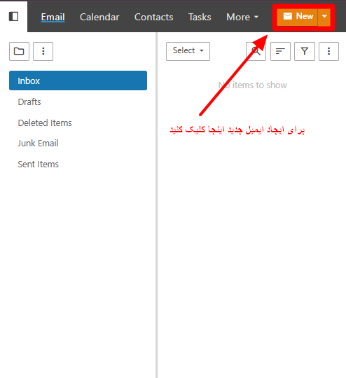 در نوار بالای صفحه، روی دکمه New کلیک کنید تا پنجرهی ساخت ایمیل جدید باز شود.