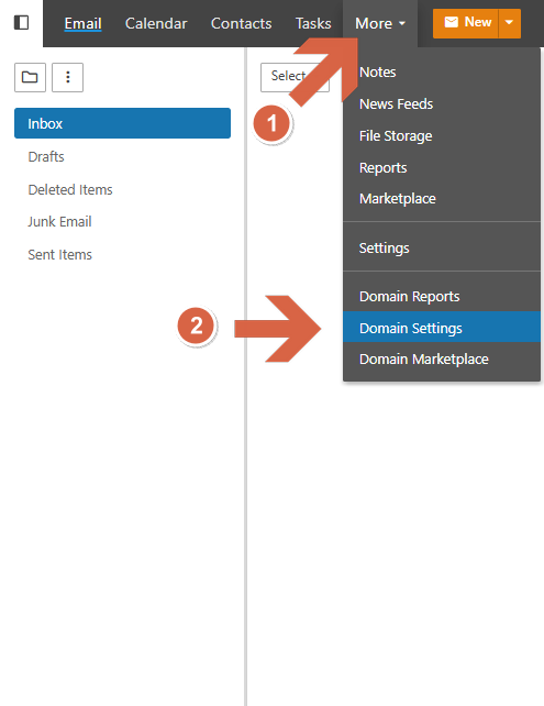- سپس از لیست بازشده، گزینه Domain Settings را انتخاب نمایید.