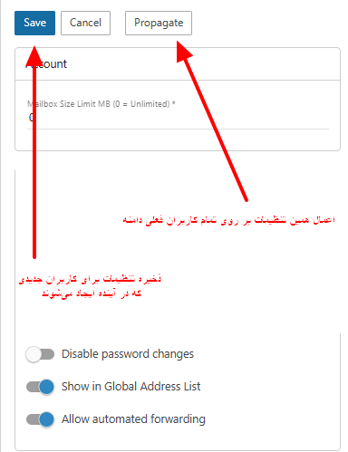 | Propagate | اعمال همین تنظیمات بر روی تمام کاربران فعلی دامنه. |